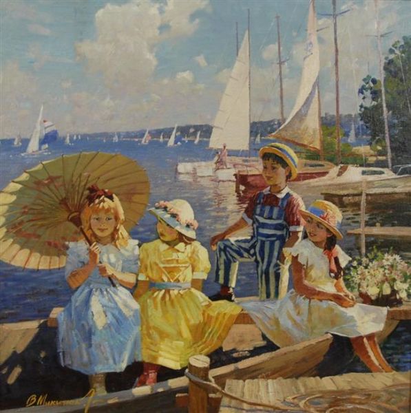 B Mukutiok ( 1900 - ) is a painter. B Mukutiok s works have been auctioned off multiple times, with realized prices varying according to the size and medium of the artwork, for instance of 1062 USD for CHILDREN BY THE HARBOR WITH PARASOL in 2012