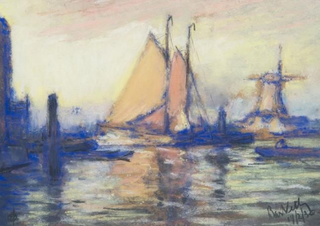 Bas Veth ( 1861 - 1944 ) was a Dutch painter. Bas Veth s works have been put up for auction numerous times, with realized prices surpassing estimated prices, varying from 299 USD for Beurtschip en vrachtschepen voor Dordrecht. in 2004 to 4484.98 USD for Tjalk op de Oude Maas voor Dordrecht in 2004 , based on the size and medium of the artwork.