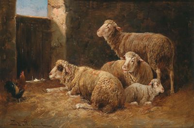 Battignant ( 1800 - ) is a painter. Battignant s works have been auctioned off multiple times, with realized prices varying according to the size and medium of the artwork, for instance of 2313.57 USD for Sheep in a Pen in 2009