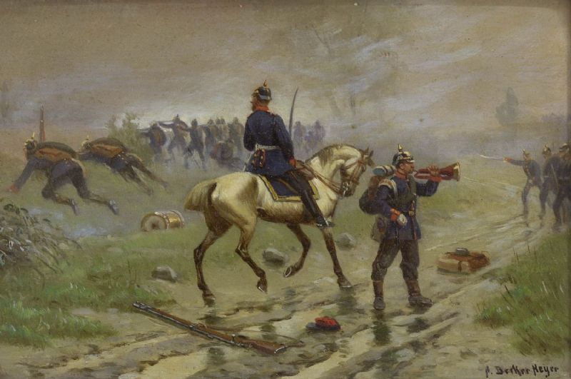 Becker Heyer ( 1862 - 1928 ) was a painter. Becker Heyer s works have been auctioned off multiple times, with realized prices varying according to the size and medium of the artwork, for instance of 129.12 USD for Auf dem Schlachtfel in 2009