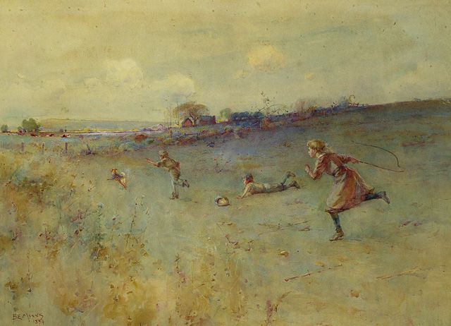 Benjamin Edward Minns ( 1880 - ) is an Australian painter. Benjamin Edward Minns s works have been put up for auction numerous times, with realized prices surpassing estimated prices, varying from 9675.56 USD for Native, MacLeay River, New South Wales in 2004 to 12413.61 USD for Children at Play in 2006 , based on the size and medium of the artwork.