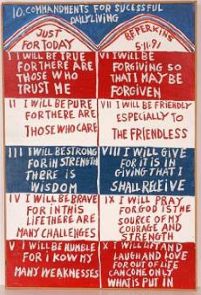 Benjamin Franklin Perkins ( 1904 - 1993 ) was an American painter. Benjamin Franklin Perkins s works have been put up for auction numerous times, with realized prices surpassing estimated prices, varying from 717 USD for The question in 2003 to 2500 USD for 10 Commandments in 2008 , based on the size and medium of the artwork.