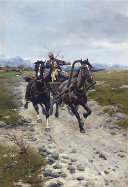 Bohdan Von Kleczynski ( 1851 - 1916 ) was a Polish painter. Bohdan Von Kleczynski s works have been put up for auction numerous times, with realized prices surpassing estimated prices, varying from 5181.63 USD for SLEDGE ATTACKED BY WOLVES in 2004 to 22500 USD for On the Move in 2007 , based on the size and medium of the artwork.