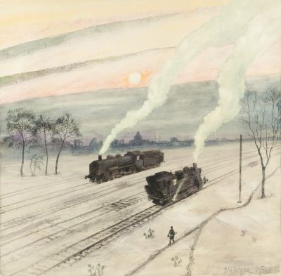 Bronislaw Linke ( 1906 - 1962 ) was a Polish painter. Bronislaw Linke s works have been put up for auction numerous times, with realized prices surpassing estimated prices, varying from 391.98 USD for Kułak - Z serii "Mój zielnik" in 2005 to 2557.08 USD for Dwa parowozy o zachodzie słońca in 2013 , based on the size and medium of the artwork.