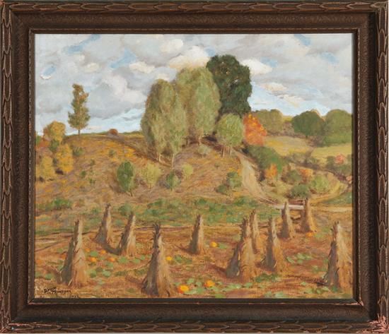 Bruce Thompson ( 1879 - 1941 ) was a painter. Bruce Thompson s works have been auctioned off multiple times, with realized prices varying according to the size and medium of the artwork, for instance of 150 USD for HAYSTACKS IN LANDSCAPE in 2014
