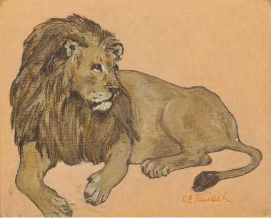 C E Tausch ( 1900 - ) is an American painter. C E Tausch s works have been put up for auction numerous times, with realized prices varying from 34 USD for Depicting a zebra in 2012 to 99 USD for Lion in 2012 , based on the size and medium of the artwork.