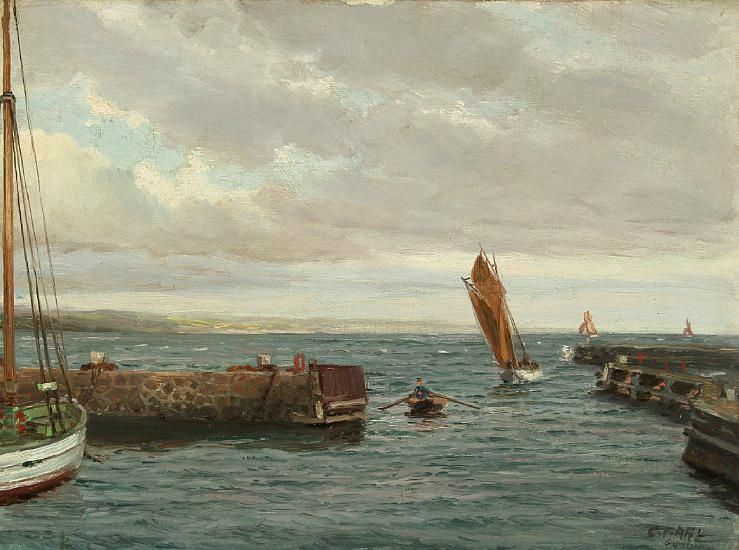 C F Ahl ( - ) is a Danish painter. C F Ahl s works have been put up for auction numerous times, with realized prices surpassing estimated prices, varying from 80.74 USD for Indsejlingen til Gudhjem havn. in 2004 to 1500 USD for Amsterdam by moonlight in 2014 , based on the size and medium of the artwork.
