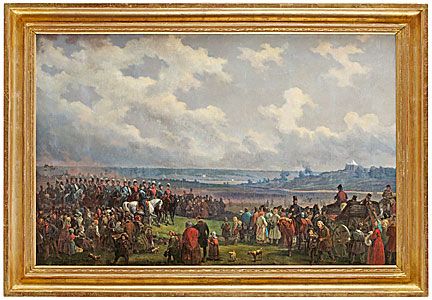 Carl Andreas Dahlstrom ( 1806 - 1869 ) was a Swedish painter. Carl Andreas Dahlstrom s works have been auctioned off multiple times, with realized prices varying according to the size and medium of the artwork, for instance of 9930.49 USD for REVY PÅ LADUGÅRDSGÄRDET VID TSAR NICOLAI I BESÖK ÅR 1838 in 2009