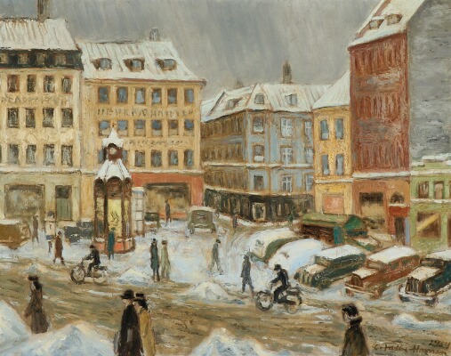 Carl Falbe Hansen ( 1896 - 1969 ) was a Danish painter. Carl Falbe Hansen s works have been put up for auction numerous times, with realized prices surpassing estimated prices, varying from 157.46 USD for Udsigt over kirkegård in 2006 to 1982.42 USD for Snowcovered townscape. in 2018 , based on the size and medium of the artwork.