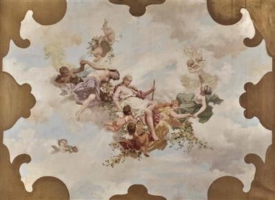 Carl J Peyfuss ( 1865 - 1932 ) was an Austrian painter. Carl J Peyfuss s works have been put up for auction numerous times, with realized prices surpassing estimated prices, varying from 1126.55 USD for Flora und vier schwebende Genien mit Putti in 2012 to 2065.34 USD for Flora und drei schwebene Genien mit Putti in 2012 , based on the size and medium of the artwork.