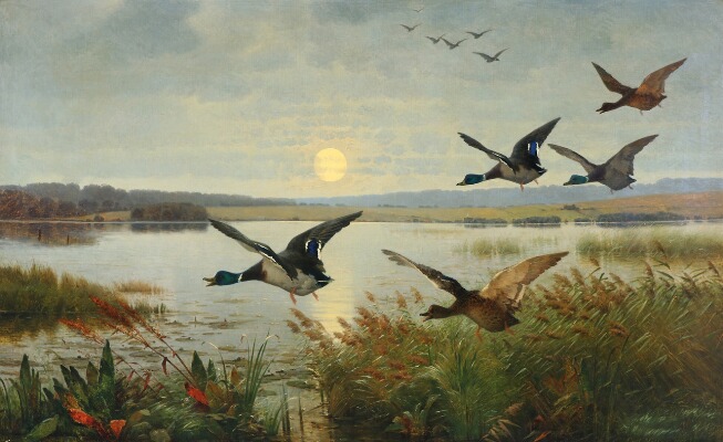 Carl Moller ( 1845 - 1920 ) was a painter. Carl Moller s works have been auctioned off multiple times, with realized prices varying according to the size and medium of the artwork, for instance of 548.27 USD for Ducks flying over a lake in 2017