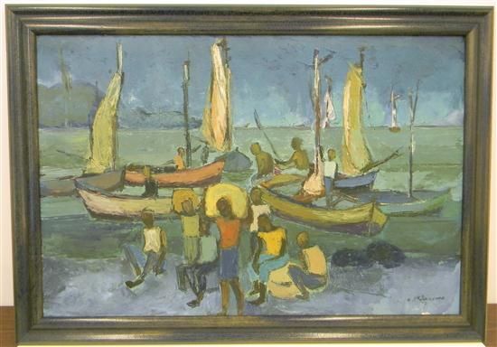 Carlo Jean jacques ( 1943 - 1990 ) was a Haitian painter. Carlo Jean jacques s works have been put up for auction numerous times, with realized prices surpassing estimated prices, varying from 367.48 USD for Nudité in 2007 to 2100 USD for Blue Boats in Harbor in 2011 , based on the size and medium of the artwork.