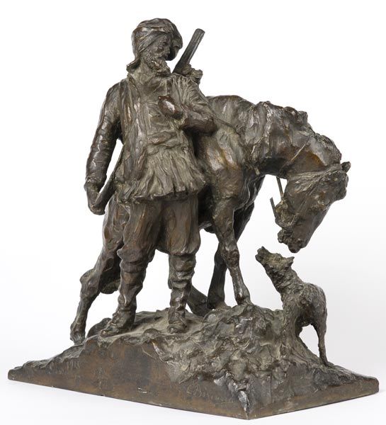 Cesare Biscarra ( 1866 - 1943 ) was an Italian painter. Cesare Biscarra s works have been put up for auction numerous times, with realized prices surpassing estimated prices, varying from 460.33 USD for Cavorett in 2006 to 1942.73 USD for CACCIATORE SARDO in 2006 , based on the size and medium of the artwork.