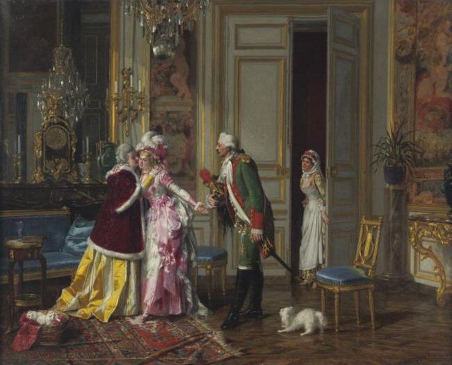 Charles Désiré Hue ( 1842 - 1899 ) was a French painter. Charles Désiré Hue s works have been auctioned off multiple times, with realized prices varying according to the size and medium of the artwork, for instance of 24000 USD for THE VISITOR in 2007