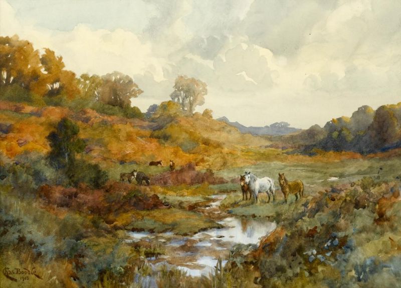 Charles Edward Boodle ( 1861 - 1947 ) was a British painter. Charles Edward Boodle s works have been put up for auction numerous times, with realized prices varying from 21.54 USD for Mill Street, Warwick in 2004 to 110.67 USD for PONIES IN THE NEW FOREST in 2008 , based on the size and medium of the artwork.