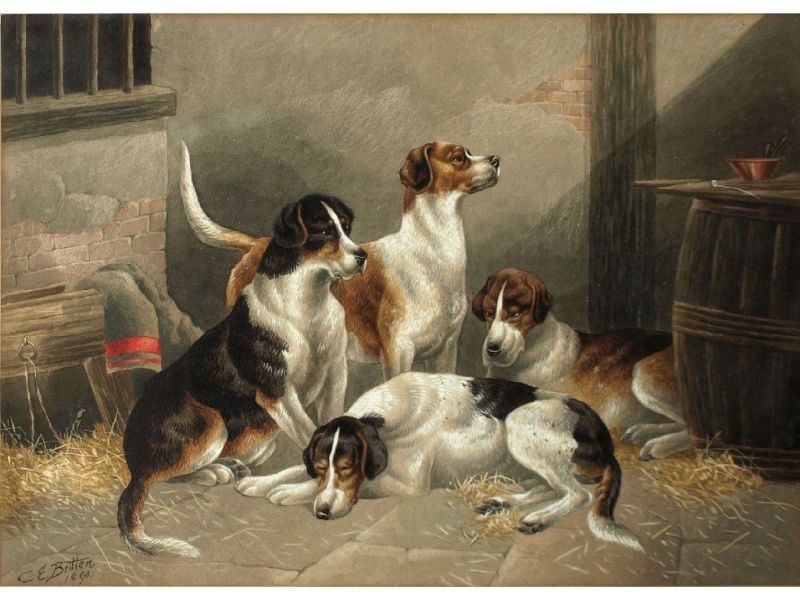 Charles Edward Brittan ( 1837 - 1888 ) was a British painter. Charles Edward Brittan s works have been put up for auction numerous times, with realized prices varying from 104.65 USD for A woodland scene in 2005 to 319.39 USD for Four hounds in a kennel in 2011 , based on the size and medium of the artwork.