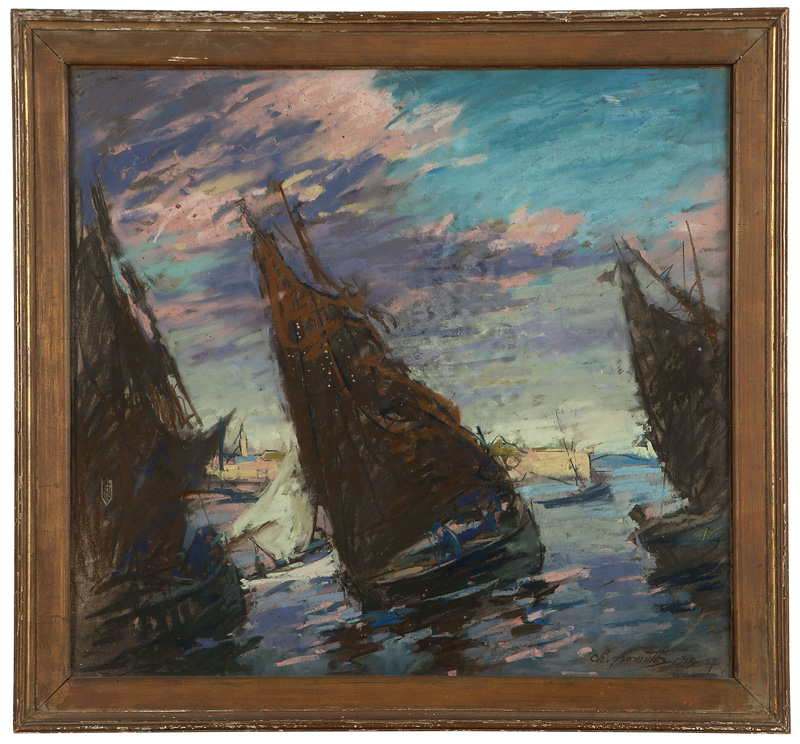 Charles Fromuth ( 1858 - 1937 ) was a French painter. Charles Fromuth s works have been auctioned off multiple times, with realized prices varying according to the size and medium of the artwork, for instance of 2700 USD for Evening Animation Among The Blue Nets in 2016