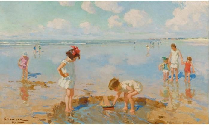 Charles Garabedian ( 1923 - 2016 ) was an American painter. Charles Garabedian s works have been put up for auction numerous times, with realized prices surpassing estimated prices, varying from 1800 USD for Untitled (String Piece), 1967 in 2007 to 32047.86 USD for Children on a beach. in 2014 , based on the size and medium of the artwork.