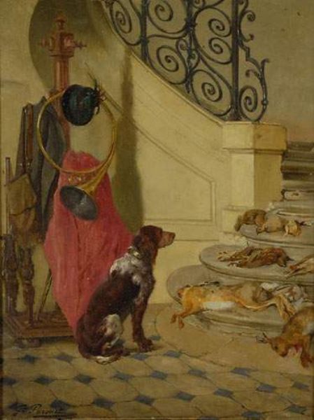 Charles Gustave Parquet ( 1826 - ) is a French painter. Charles Gustave Parquet s works have been auctioned off multiple times, with realized prices varying according to the size and medium of the artwork, for instance of 3486.96 USD for Chien gardant le gibie in 2006
