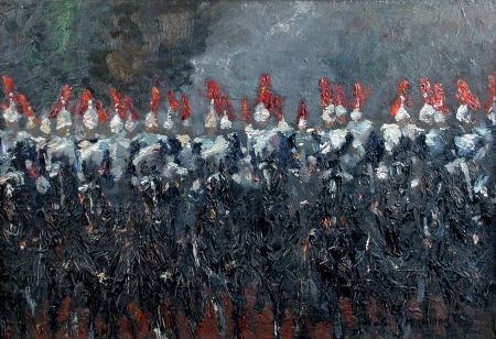 Charles Harwood ( 1907 - 1975 ) was a British painter. Charles Harwood s works have been put up for auction numerous times, with realized prices varying from 97.8 USD for Beach scene and street scene, in 2004 to 148.19 USD for The Blues and Royals in 2009 , based on the size and medium of the artwork.