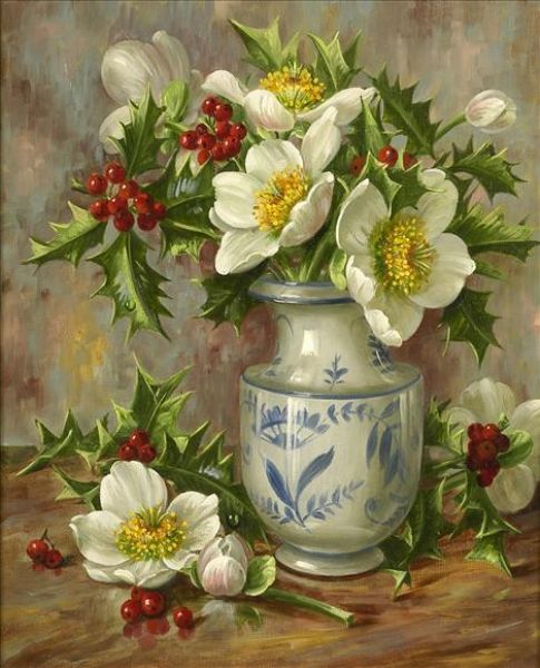 Chris Hill ( 1900 - ) is a British painter. Chris Hill s works have been auctioned off multiple times, with realized prices varying according to the size and medium of the artwork, for instance of 153.81 USD for Christmas Roses With Holly In A Blue And White Vase in 2007