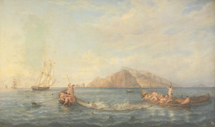 Christian Frederik Thoming ( 1802 - 1873 ) was a German painter. Christian Frederik Thoming s works have been auctioned off multiple times, with realized prices varying according to the size and medium of the artwork, for instance of 10264.39 USD for FISHERMEN HAULING IN THEIR CATCH OFF CAPRI IN THE THE BAY OF NAPLES, FRENCH MERCHANTMEN IN THE DISTANCE in 2013