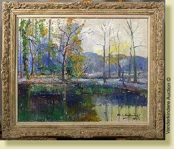 Clément Van Droogenbroek ( 1875 - 1966 ) was a Belgian painter. Clément Van Droogenbroek s works have been auctioned off multiple times, with realized prices varying according to the size and medium of the artwork, for instance of 262.27 USD for L'√©tang in 2007