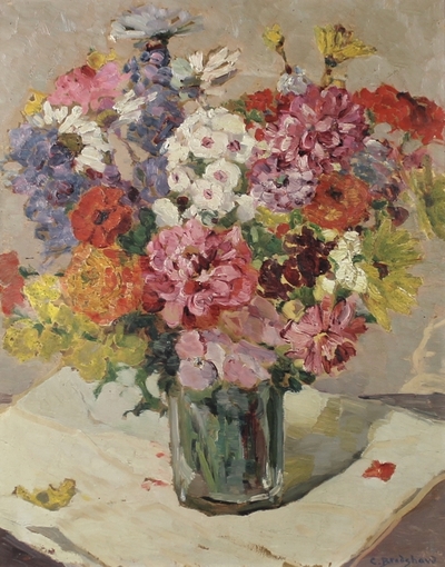 Constance Bradshaw ( 1872 - 1961 ) was a painter. Constance Bradshaw s works have been put up for auction numerous times, with realized prices varying from 126.77 USD for Still life of Summer flowers in 2010 to 490.79 USD for still life of flowers in a glass jar in 2017 , based on the size and medium of the artwork.