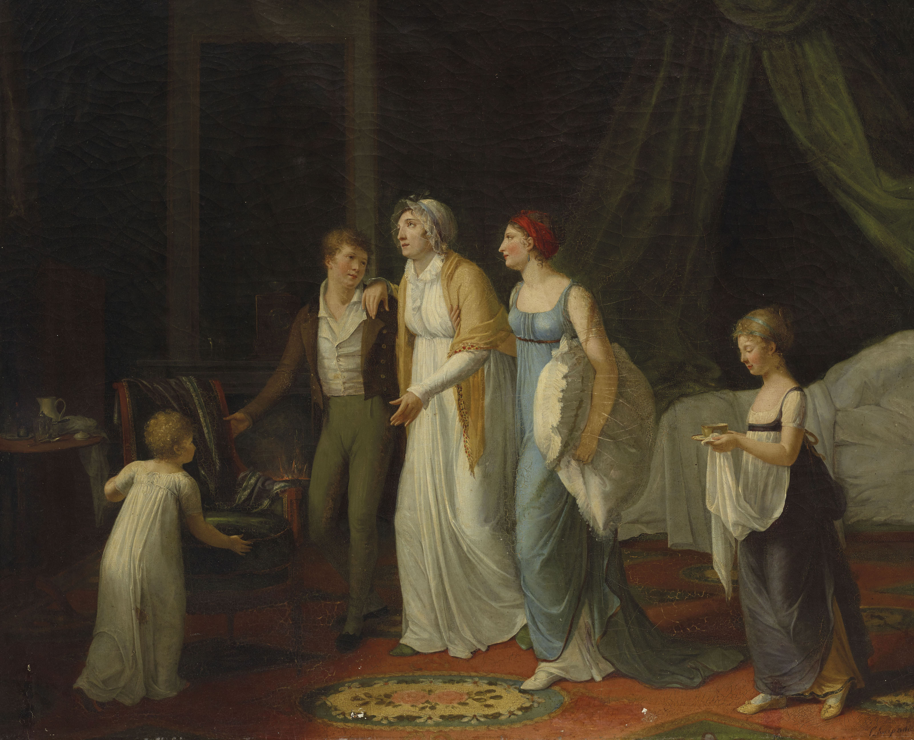 Constance Marie Charpentier ( 1767 - 1849 ) was a French painter. Constance Marie Charpentier s works have been put up for auction numerous times, with realized prices surpassing estimated prices, varying from 6000 USD for PORTRAIT OF A YOUNG OFFICER in 2007 to 19757.64 USD for Une mère convalescente soignée par ses enfants in 2019 , based on the size and medium of the artwork.