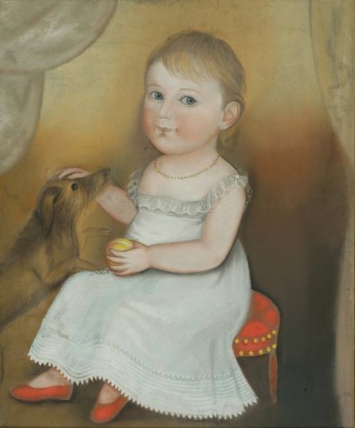 Deacon Robert Peckham ( 1785 - 1877 ) was an American painter. Deacon Robert Peckham s works have been auctioned off multiple times, with realized prices varying according to the size and medium of the artwork, for instance of 102000 USD for A PORTRAIT OF A BABY IN A WHITE DRESS AND RED SHOES WITH PEACH AND DOG in 2005