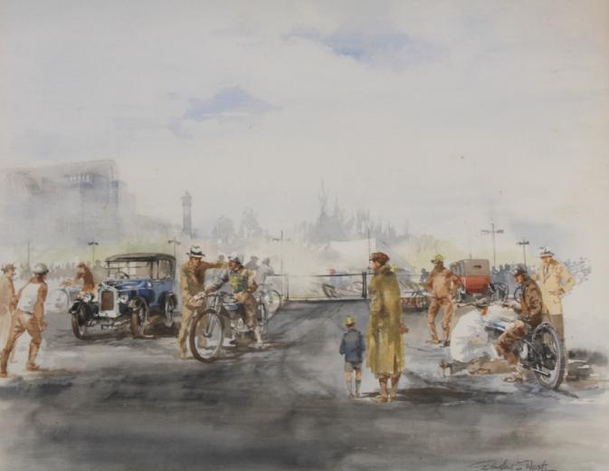 Douglas E West ( - ) is a painter. Douglas E West s works have been auctioned off multiple times, with realized prices varying according to the size and medium of the artwork, for instance of 154.21 USD for A MOTORCYCLING MEET IN THE 1940's in 2017