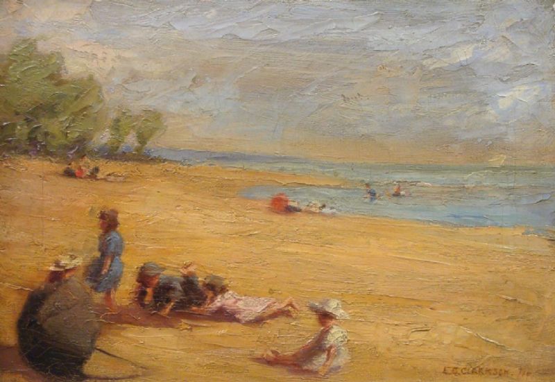 E G Clarkson ( - ) is a painter. E G Clarkson s works have been auctioned off multiple times, with realized prices varying according to the size and medium of the artwork, for instance of 368 USD for figures on a beach in 2012