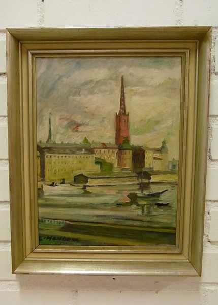 E Hellbom ( 1895 - 1969 ) was a Swedish painter. E Hellbom s works have been put up for auction numerous times, with realized prices varying from 36.27 USD for Stockholmsmotiv in 2009 to 36.75 USD for Stockholmsmotiv in 2011 , based on the size and medium of the artwork.
