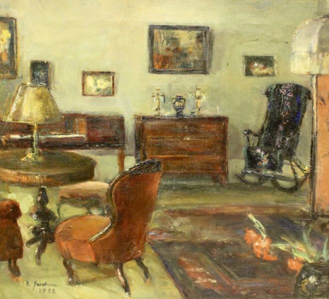 E Jacobsson ( - ) is a painter. E Jacobsson s works have been auctioned off multiple times, with realized prices varying according to the size and medium of the artwork, for instance of 24.25 USD for Interiör in 2015