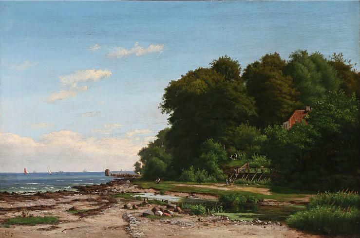E M Jensen ( 1822 - 1915 ) was a painter. E M Jensen s works have been put up for auction numerous times, with realized prices surpassing estimated prices, varying from 174.54 USD for View from Juleb√¶k with Kronborg Castle in the background. in 2011 to 290.89 USD for View from a forest lake in 2011 , based on the size and medium of the artwork.