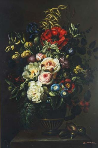 E Morel ( 1835 - 1905 ) was a painter. E Morel s works have been auctioned off multiple times, with realized prices varying according to the size and medium of the artwork, for instance of 1380.63 USD for Blomsterstilleben in 2004