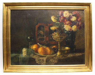 E Müller ( - ) is a painter. E Müller s works have been put up for auction numerous times, with realized prices varying from 139.46 USD for Flore Pittoresque in 2006 to 265.03 USD for Stillleben mit Obst und Blumen in 2012 , based on the size and medium of the artwork.