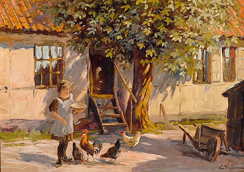 E Steffensen ( 1884 - 1964 ) was a painter. E Steffensen s works have been auctioned off multiple times, with realized prices varying according to the size and medium of the artwork, for instance of 315.36 USD for A boy is driving the cattle in 2006