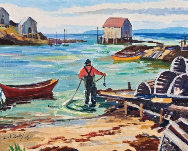 Earl Bailly ( 1903 - 1977 ) was a German painter. Earl Bailly s works have been put up for auction numerous times, with realized prices surpassing estimated prices, varying from 563.63 USD for Lobster Traps in 2006 to 2065.31 USD for Blue Rocks, Nova Scotia in 2011 , based on the size and medium of the artwork.