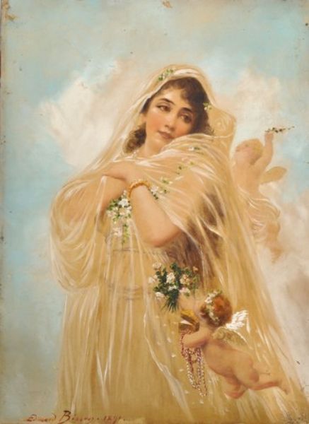 Edourd Bisson ( 1856 - 1939 ) was a French painter. Edourd Bisson s works have been auctioned off multiple times, with realized prices varying according to the size and medium of the artwork, for instance of 74.78 USD for A young lady with attendant cherubs in 2012