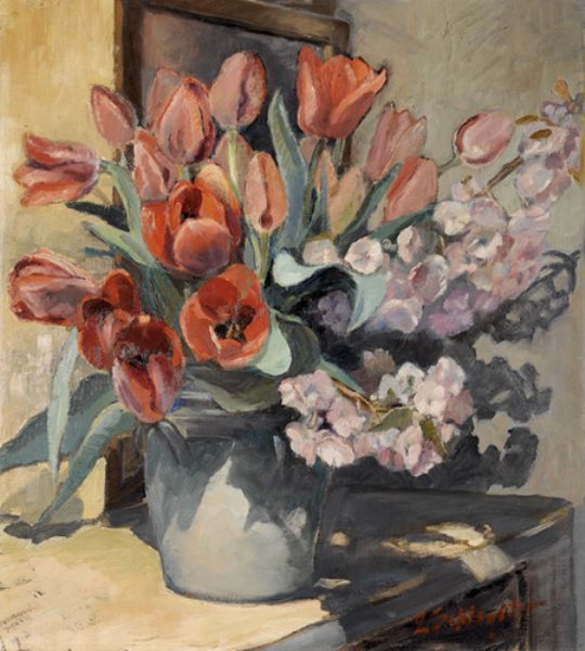 Eduardo Schlageter ( 1893 - 1974 ) was a Venezuelan painter. Eduardo Schlageter s works have been put up for auction numerous times, with realized prices surpassing estimated prices, varying from USD for in to a remarkable record 1900000 USD for Girasoles in 2005 , based on the size and medium of the artwork.