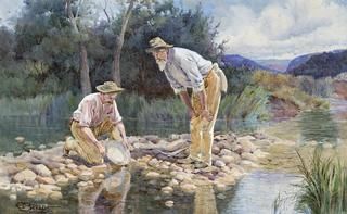 Edward Bevan ( 1854 - 1898 ) was a painter. Edward Bevan s works have been put up for auction numerous times, with realized prices surpassing estimated prices, varying from 624.47 USD for Colonial House in 2007 to 7295.86 USD for WASHDIRT, PANNING OUT THE GOLD in 2011 , based on the size and medium of the artwork.