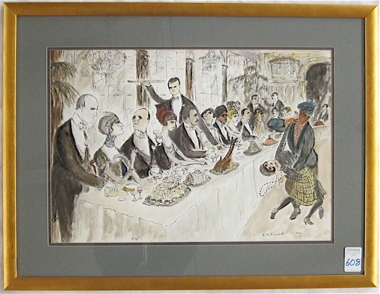 Edward Milton Plunkett ( 1922 - ) is an American painter. Edward Milton Plunkett s works have been put up for auction numerous times, with realized prices varying from 132 USD for Nude Restaurant in 2007 to 425 USD for Wedding Feast of Theseus and Hippolyte in 2014 , based on the size and medium of the artwork.