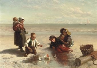 Elchanon Verveer ( 1826 - 1900 ) was a Dutch painter. Elchanon Verveer s works have been put up for auction numerous times, with realized prices surpassing estimated prices, varying from 1234.8 USD for Mending the nets in 2004 to 48462.32 USD for Les voila! Au bord de la mer in 2004 , based on the size and medium of the artwork.
