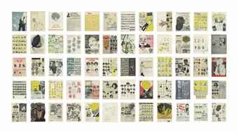 Ellen Gallagher ( 1965 - ) is an American painter. Ellen Gallagher s works have been put up for auction numerous times, with realized prices surpassing estimated prices, varying from 72000 USD for FRONTS in 2004 to 987750 USD for DeLuxe in 2013 , based on the size and medium of the artwork.