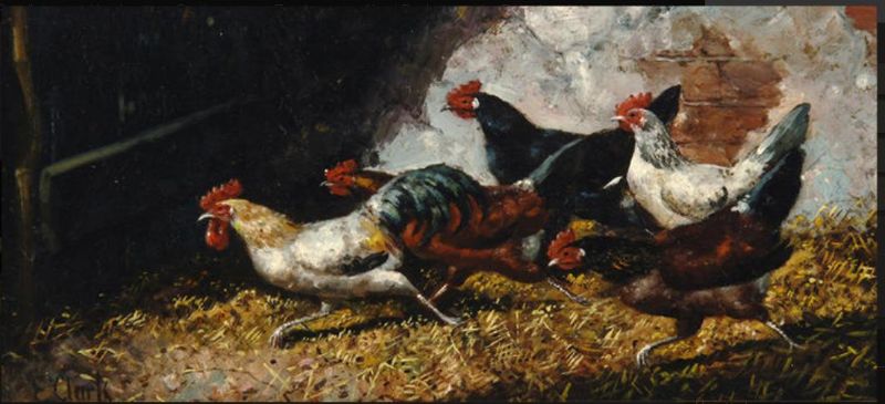 Elliot Clark ( 1883 - 1980 ) was an American painter. Elliot Clark s works have been auctioned off multiple times, with realized prices varying according to the size and medium of the artwork, for instance of 1375 USD for Barnyard Race, Dinner Time: A pair in 2012