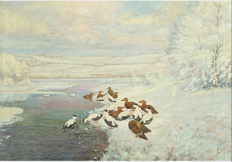 Emil Janus Weinreich ( 1892 - 1975 ) was a Danish painter. Emil Janus Weinreich s works have been put up for auction numerous times, with realized prices surpassing estimated prices, varying from 143.18 USD for Fishermen gathered on the beach in 2007 to 183.81 USD for Winterscape with eider ducks. in 2014 , based on the size and medium of the artwork.