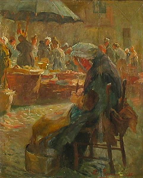 Emile Rommelaere ( 1873 - 1962 ) was a Belgian painter. Emile Rommelaere s works have been auctioned off multiple times, with realized prices varying according to the size and medium of the artwork, for instance of 550 USD for A market scene with busy stalls in 2008