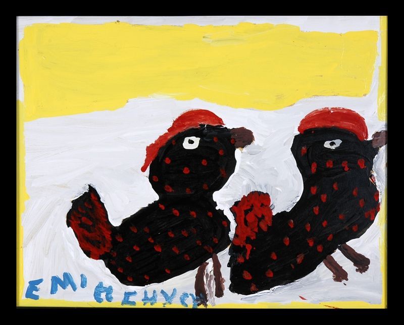 Emitte Hych ( 1909 - ) is a painter. Emitte Hych s works have been put up for auction numerous times, with realized prices varying from 150 USD for GREEN PLANE in 2006 to 300 USD for WHITE DOG in 2006 , based on the size and medium of the artwork.