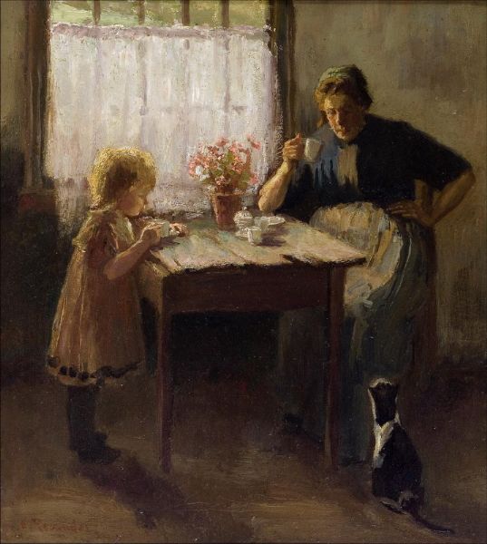 Erika Relander ( 1877 - 1937 ) was a Danish painter. Erika Relander s works have been put up for auction numerous times, with realized prices surpassing estimated prices, varying from 1762.76 USD for Interior with mother and daughter with a cat in 2007 to 2453.15 USD for KAHVIPÖYDÄN ÄÄRESSÄ in 2007 , based on the size and medium of the artwork.